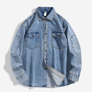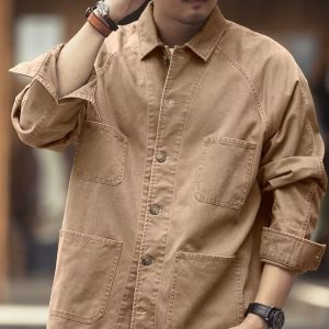 Heavy Washed Shirt Coat Men’s Loose