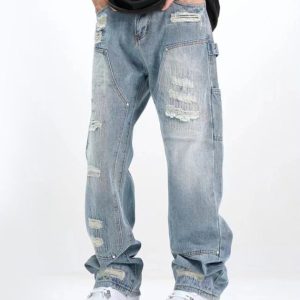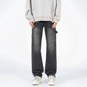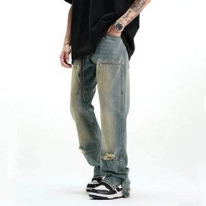 Distressed Washed Gray Jeans Men’s American Fashionable Loose