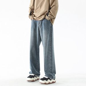 American-style Split Zipper Retro Wide Leg Straight Light Color And Water Scrubbing Jeans