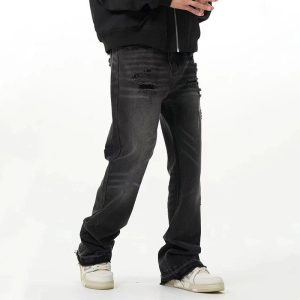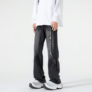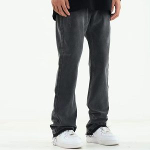 Micro Flared Foot Fringe Worn Jeans Men’s Ins